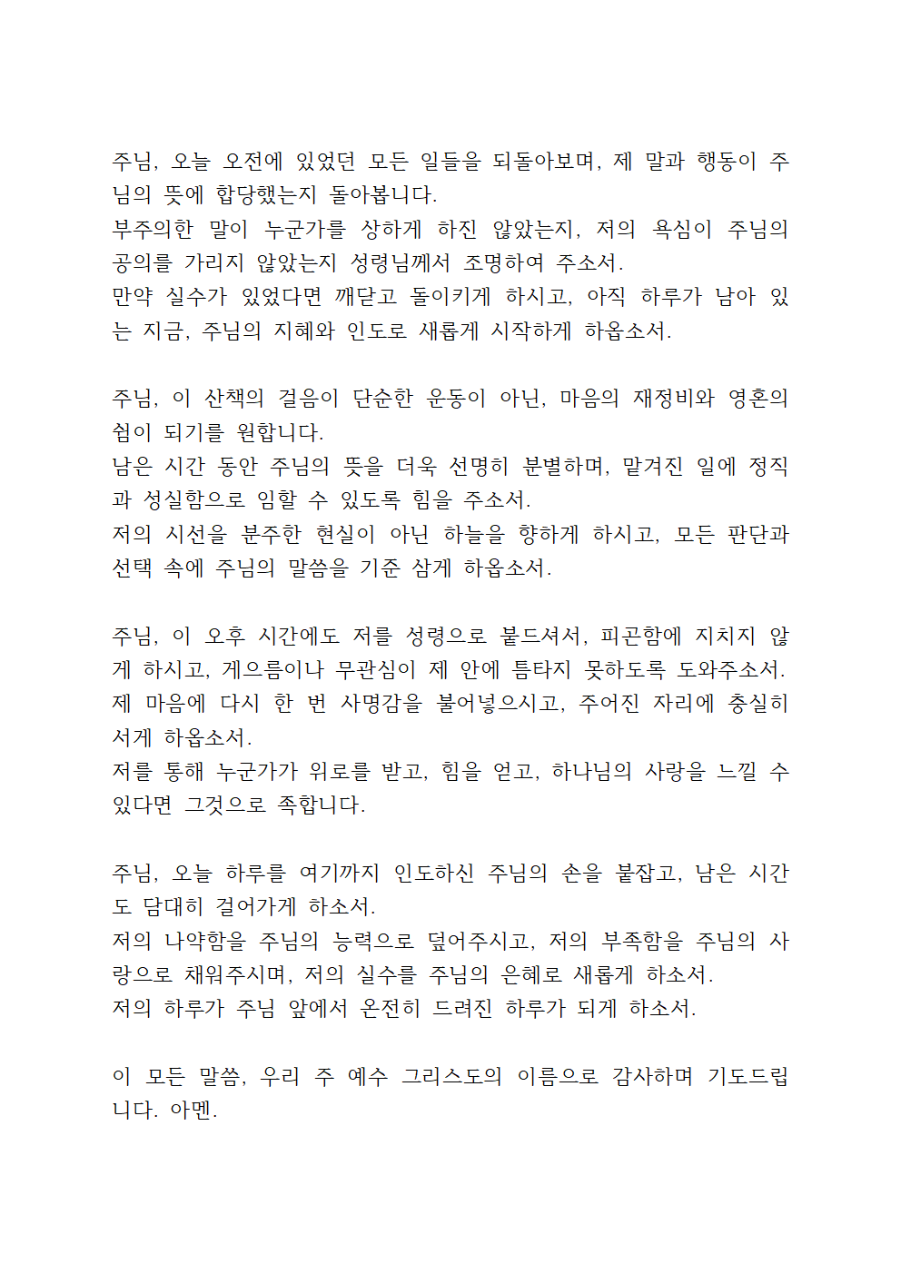 '산책 기도문 (점심, 오후)'