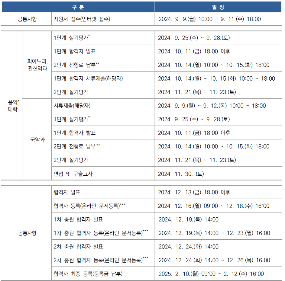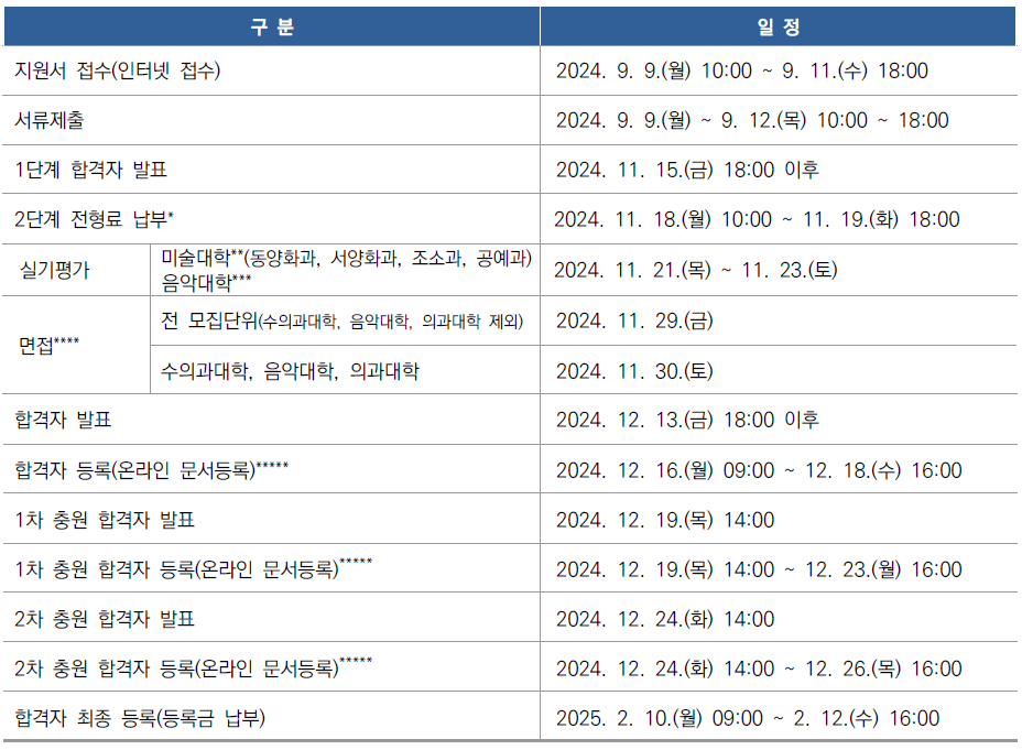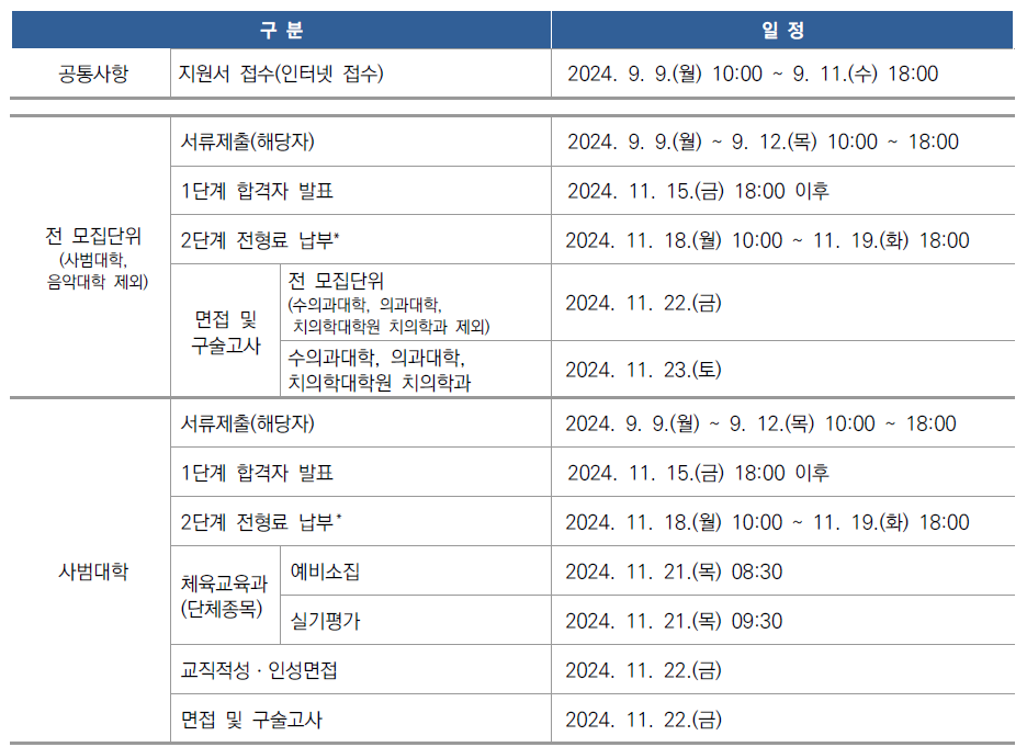 | 면접 :전 모집단위(수의과대학, 의과대학 제외) | 2024. 11. 29.(금) |
