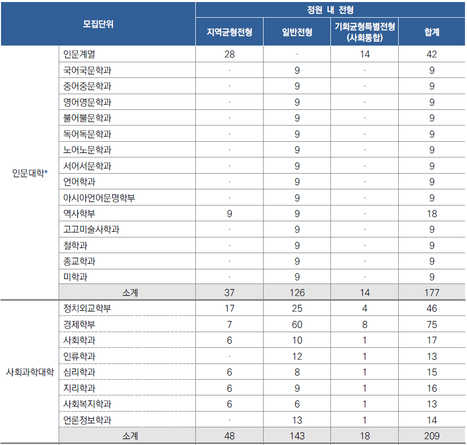 2-1. 학생부종합전형 (일반전형) _ 전 모집단위(음악대학 제외)