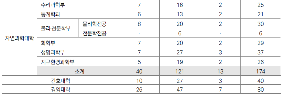 | 자연과학대학 | 통계학과, 물리·천문학부, 화학부, 생명과학부, 지구환경과학부 | 2,975,000 |