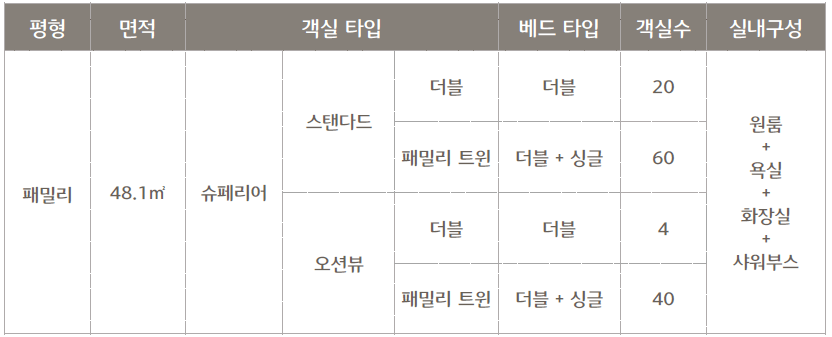 3. 호텔 슈페리어 (스탠다드, 오션뷰)