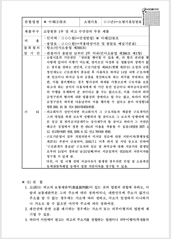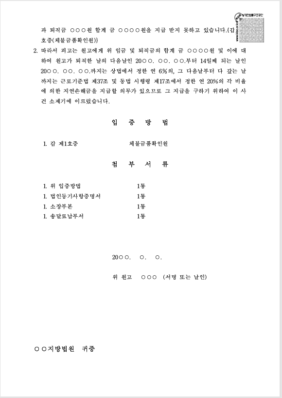 체불 임금 및 퇴직금 청구 소송 양식