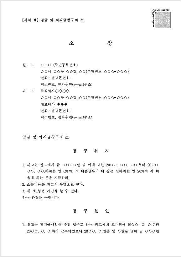 또한 대한법률구조공단에서는 무료법률구조를 진행하고 체불임금과 관련해서 소송비용 및 변호사 보수비용을 지원하기도 합니다.
