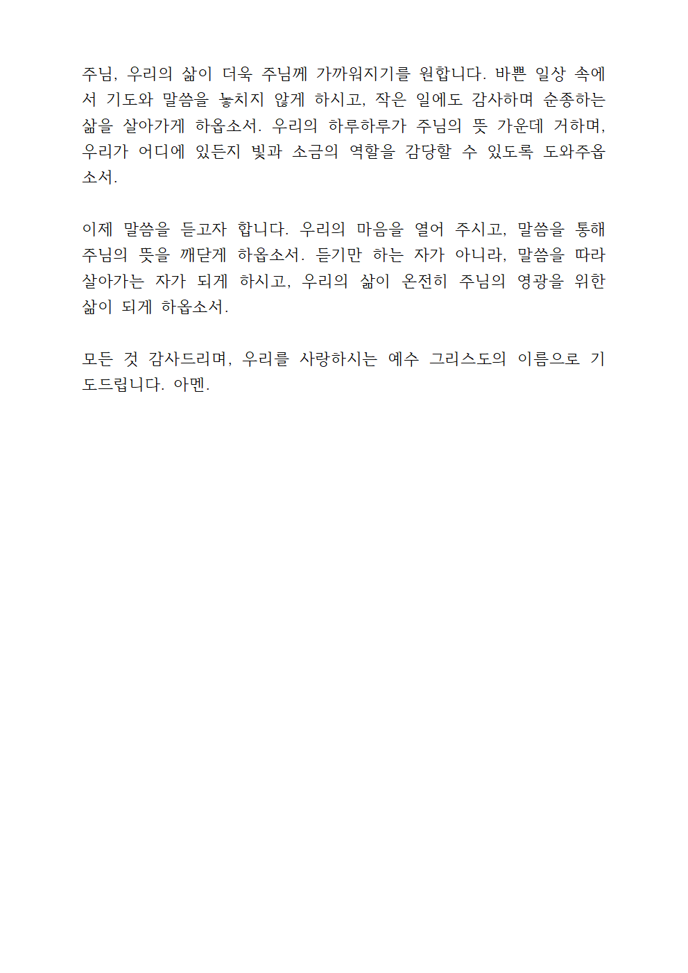 ※ 기도문을 한글 문서 or PDF 문서로 받으시려면 아래를 참고하세요.