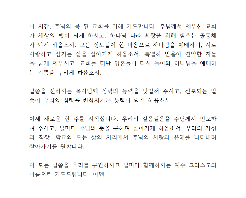 ※ 기도문을 한글 문서 or PDF 문서로 받으시려면 아래를 참고하세요.