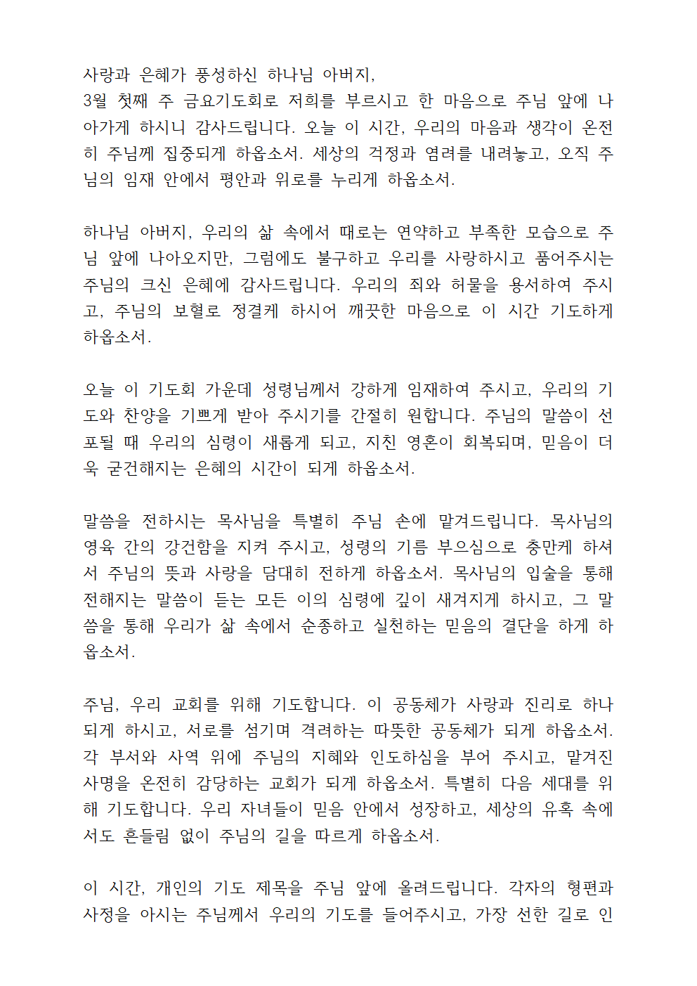 2025년 3월 첫째 주 대표기도문 파일