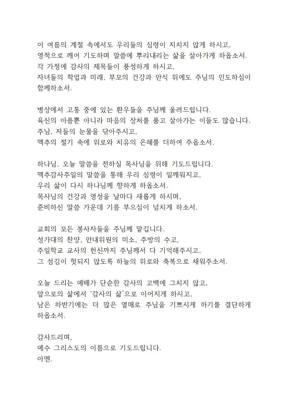 ※ 기도문을 한글 문서 or PDF 문서로 받으시려면 아래를 참고하세요.